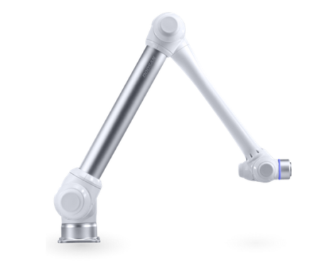 The cobot has a 6-axis articulated arm with highly-sensitive torque sensors that detect any change in force or pressure that cause it to stop.